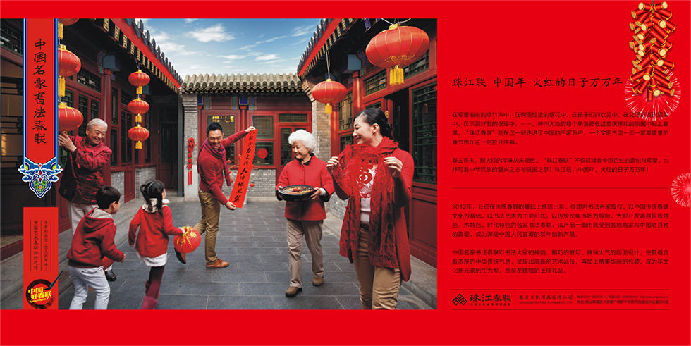 第三,我们为珠江春联设计并导入了全新的产品包装、品牌识别系统与产品展示系统。 2015年春节 ,珠江春联一炮走红,销售量比2014年翻了三番